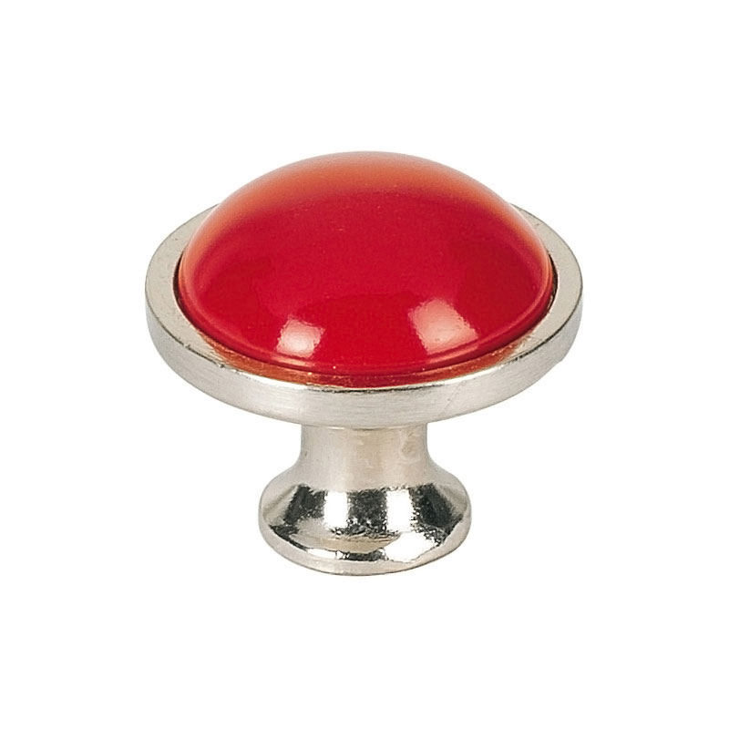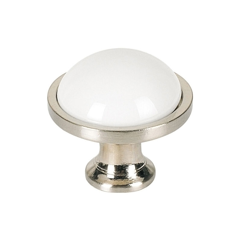 Bouton porcelaine rond sur embase laiton, décor nickel brossé. Gamme surf Vendu au conditionnement