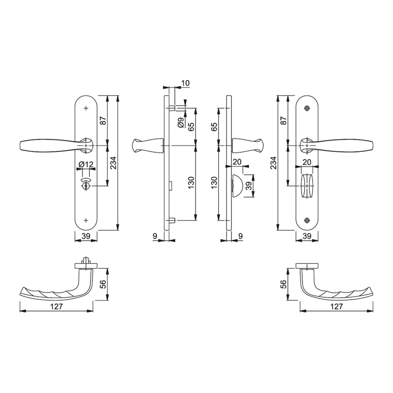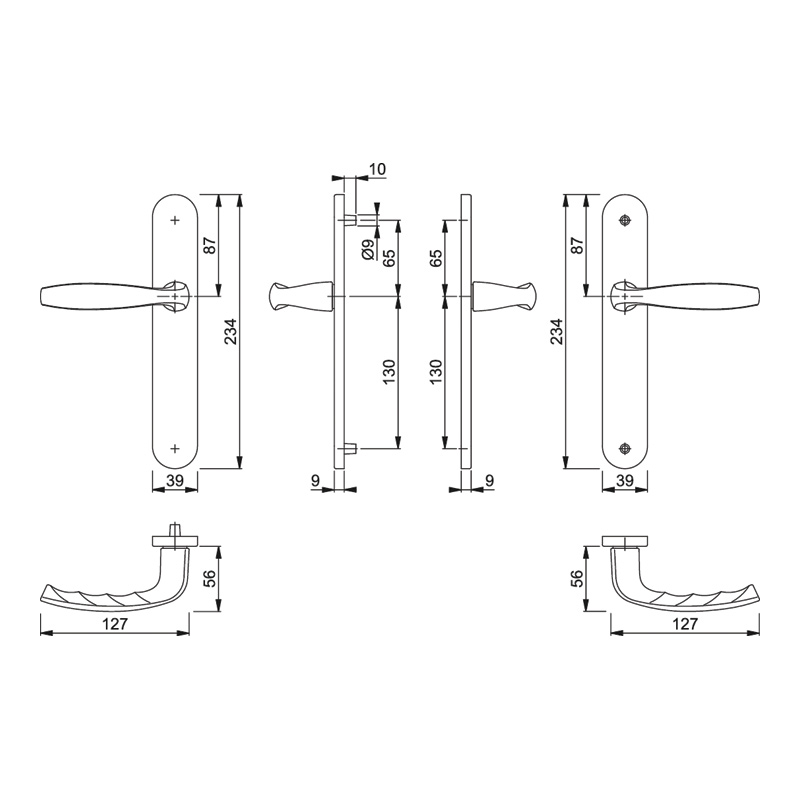 Garniture sur plaques longues 234x39mm, pour porte intérieure.