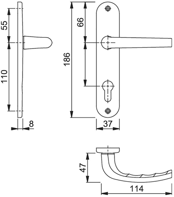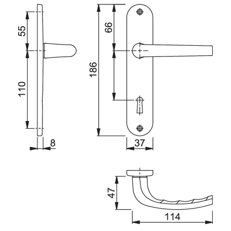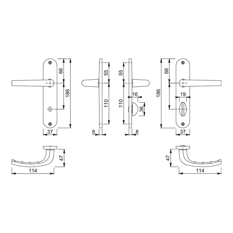 Garniture sur plaques courtes 186x37mm, pour porte intérieure.