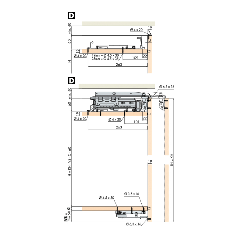 Utilisable pour tous caissons haut et bas.