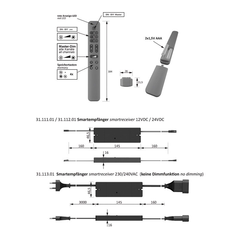 Le set comprend une télécommande S-Mitter Smart et un récepteur Smart à 1 sortie