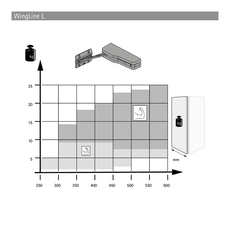 Le kit version "léger" convient aux petites portes pliantes, par ex. pour des meubles hauts, des meubles bas, des meubles de réhausse et des buffets.