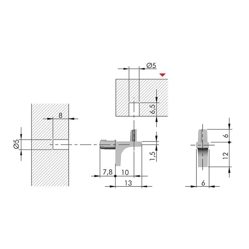 Taquet 2 tourillons Ø 5mm ITALIANA FERRAMENTA