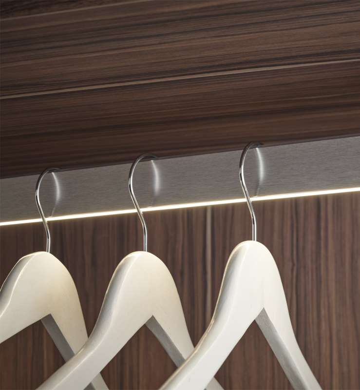 Grâce à sa barre lumineuse intégrée, elle éclaire automatiquement l'intérieur de vos penderies, armoires ou dressings, offrant une visibilité optimale à chaque ouverture.